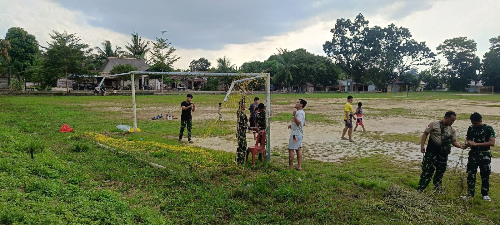 Selain pengecatan tiang gawang, Satgas juga melakukan pengecatan Bangku Tribun penonton, Pemasangan Jaring gawang, pemberian sarana Olahraga dan pembersihan area sekitar lapangan Bola agar lebih bersih dan aman digunakan.
